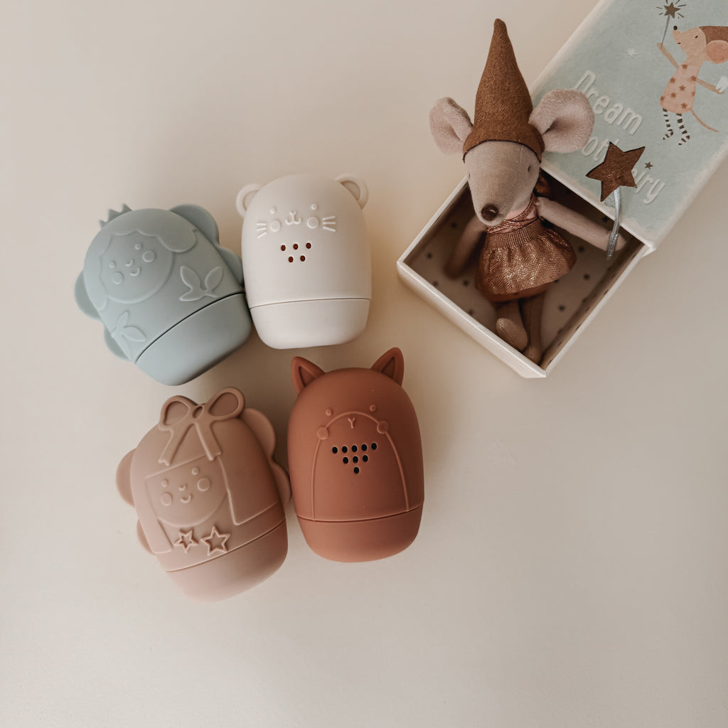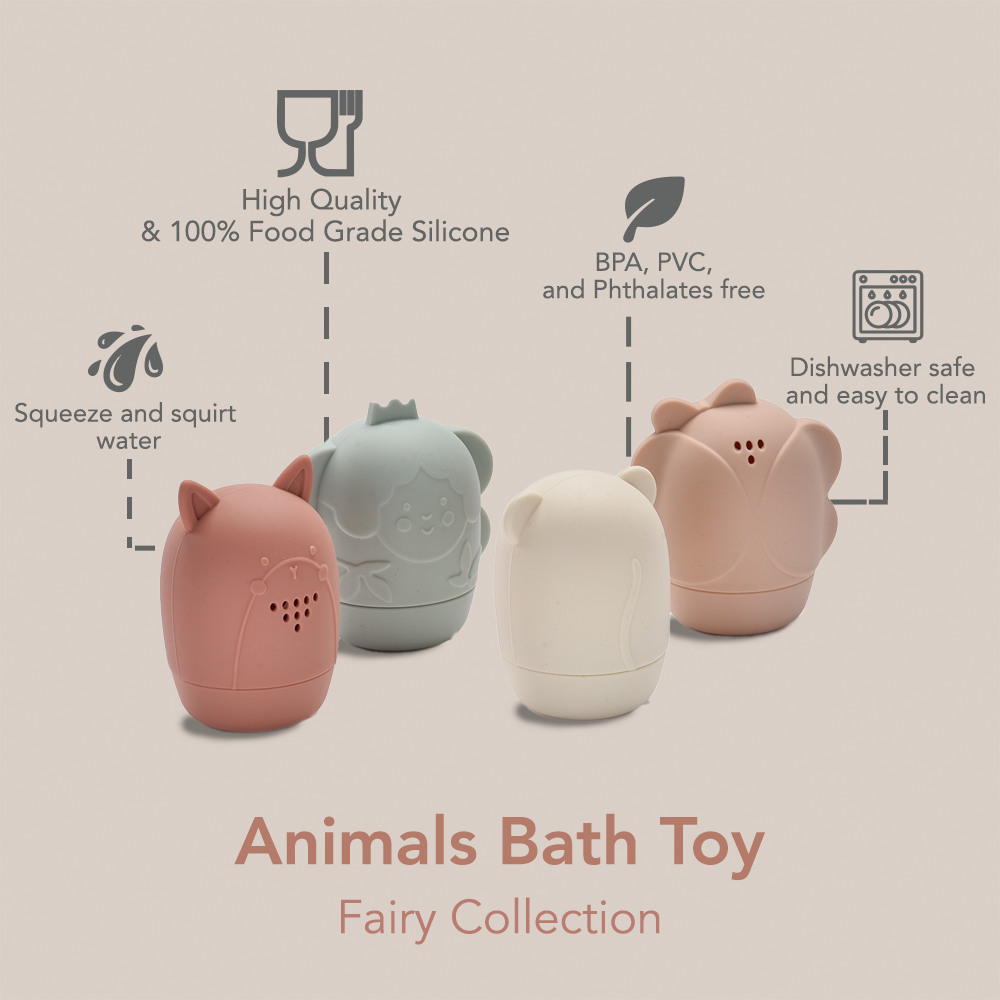 Bath time adventures await with noüka’s Silicone Animal Bath Toys. Squeeze them to fill up with water and squirt for bath time fun. Detachable pieces come apart for easy cleaning and to prevent mold. Made from soft and flexible food grade silicone, our Animal Bath Toys are durable and long-lasting. Both little ones and parents will love the adorable animal shapes.