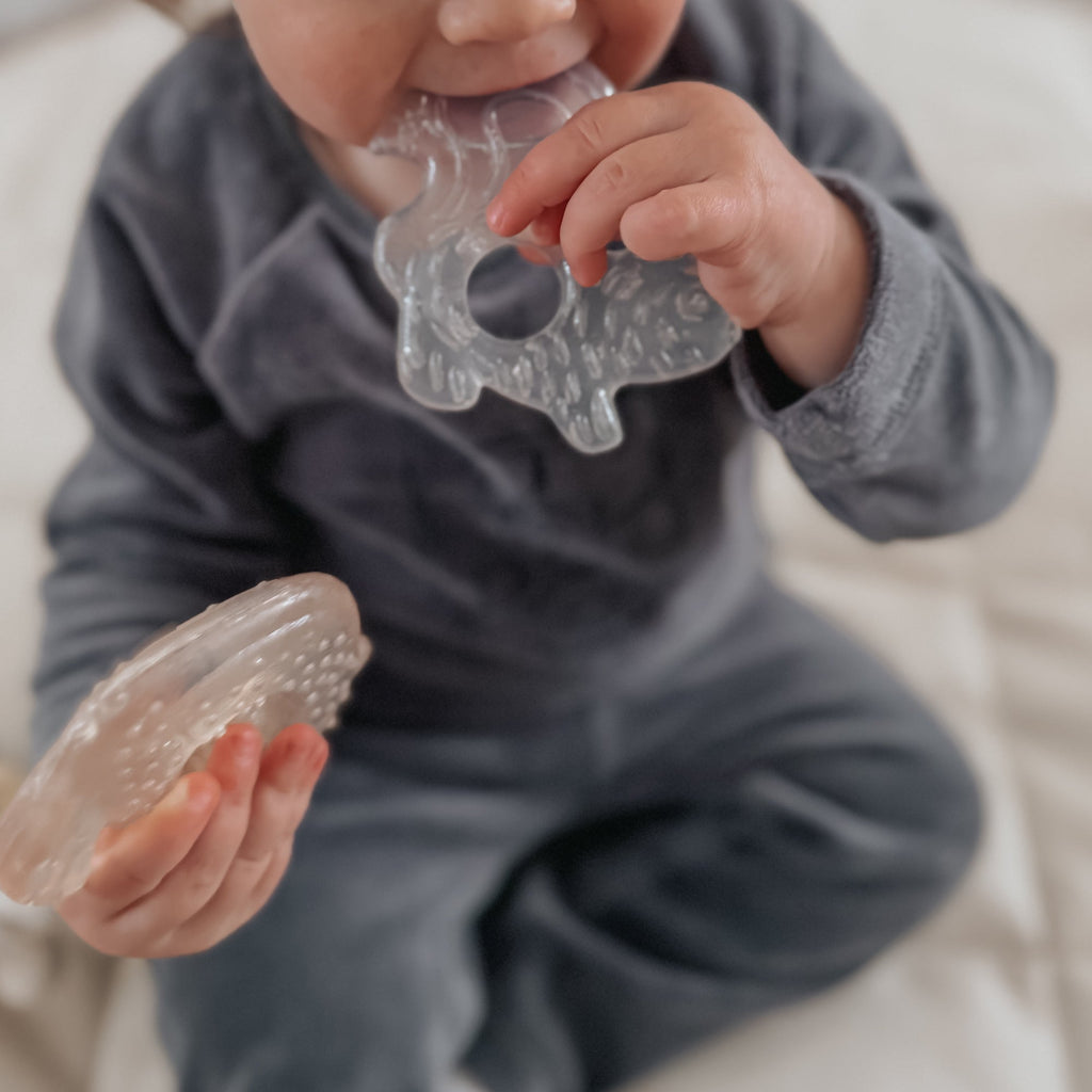 - Textured teether – Designed to massage and soothe sore gums while helping with emerging teeth