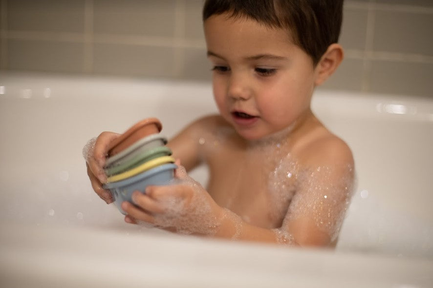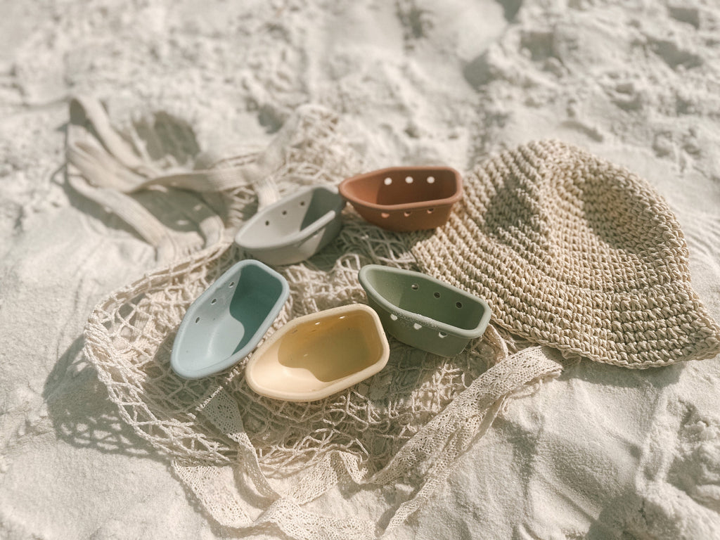 Float, scoop, and sift with the noüka Silicone Stacking Boats during bath time and water play. Five floating boats feature holes at the top for scooping and sifting water or sand. Easily stackable for storage and encourages fine motor skill development. Made from soft and flexible food-grade silicone, our floating boats are easy to clean, durable, and long-lasting. These Silicone Stacking Boats are available in an array of calming, modern colors for your little one.