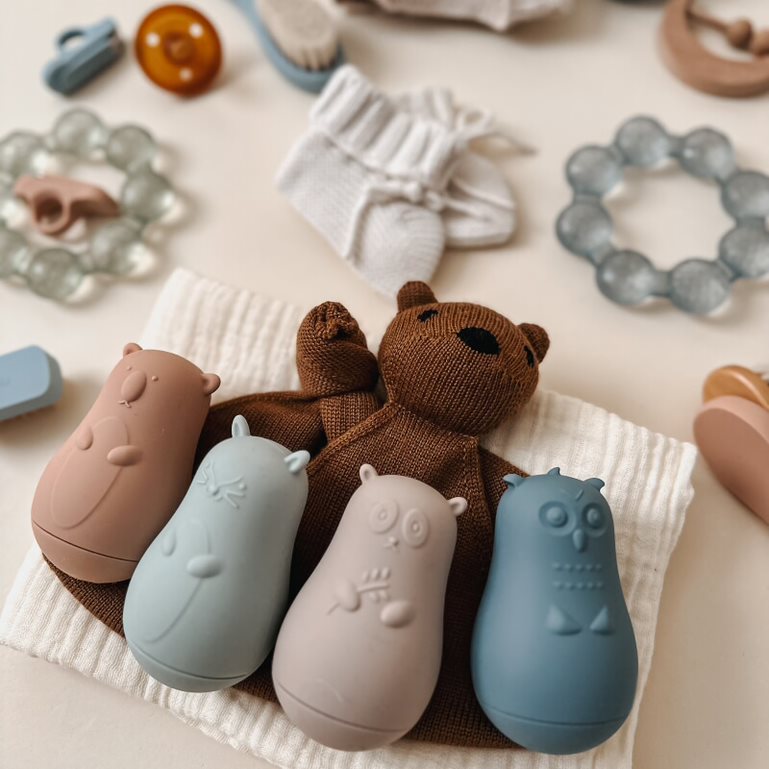 Time for fun in the tub with noüka Wobble Bath Toys. Squeeze them to fill up with water and squirt or watch them wobble on the top of water. Detachable pieces come apart for easy cleaning and to prevent mold. Made from soft and flexible food grade silicone, our Wobbble Bath Toys are durable, and long-lasting. Both little ones and parents will love the cute bear shape and timeless, minimal design.