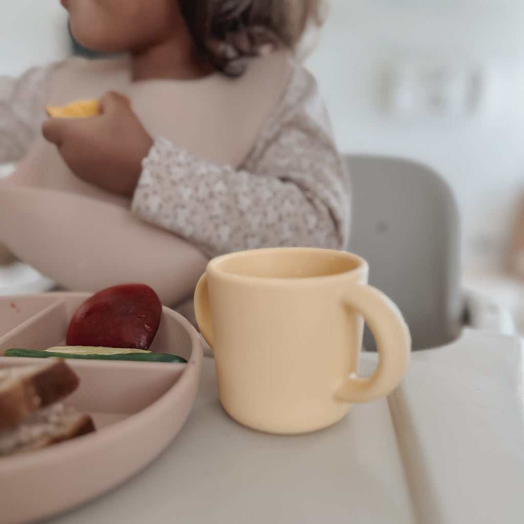 Noüka’s Silicone Training Cup helps little ones learn to drink from an open cup to develop fine motor skills and encourage independent eating. Its mini size and double easy-grip handles perfectly fit little hands to make it easier to tilt and sip. Made from our soft-to-the-touch, food-grade silicone, our training cup is easy to clean, durable, and long-lasting. The Silicone Training Cup is available in an array of calming, modern colors for your little one.