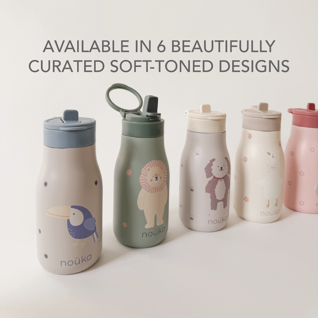Designed with both style and functionality in mind, the noüka Stainless Steel Drinking Bottle is a durable and modern hydration solution for toddlers and young children.